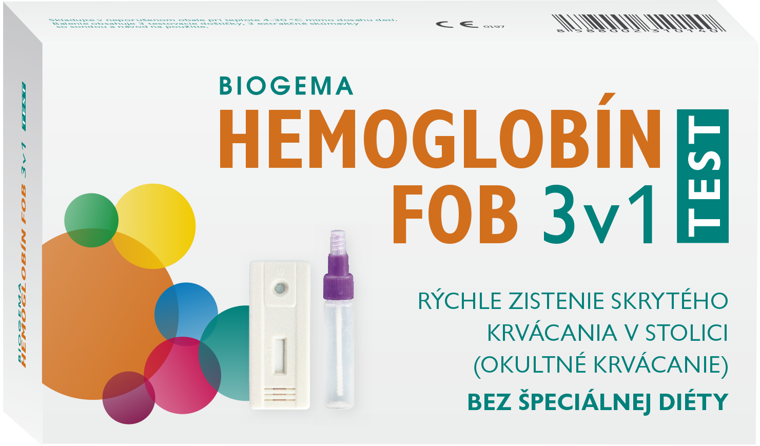 Hemoglobín test 3v1 - preventívne vyšetrenie rakoviny hrubého čreva vysoko citlivý a spožahlivý spožahlivos porovnatežná s laboratórnym testom diagnostický prostriedok in vitro na samotestovanie kval